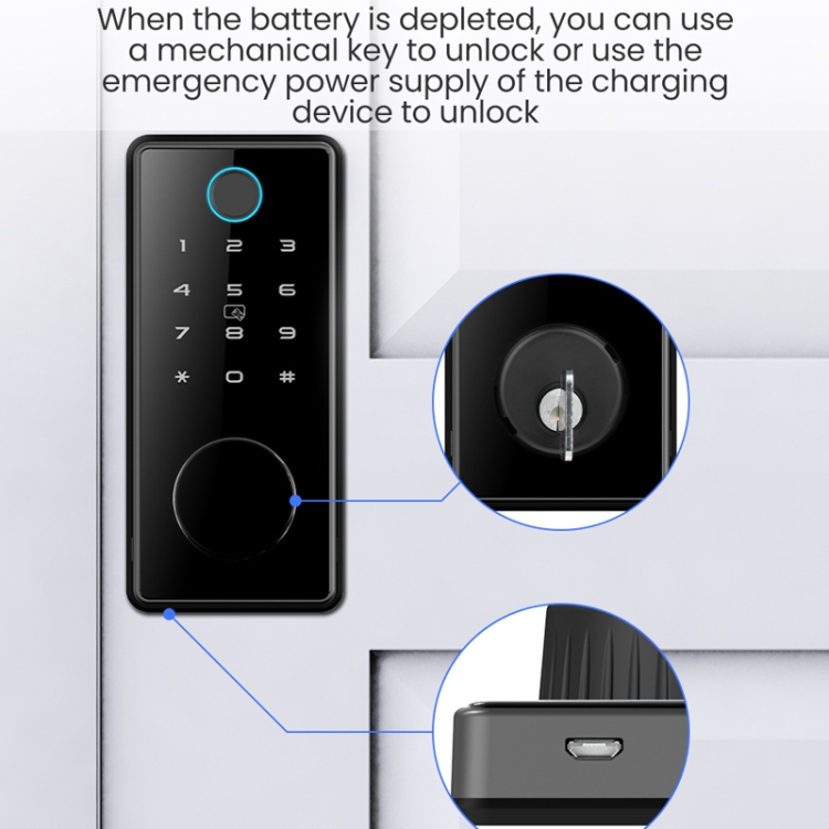 9. When the battery runs out, you can use the mechanical key to unlock the door, or use the emergency power of the charging device to unlock the door