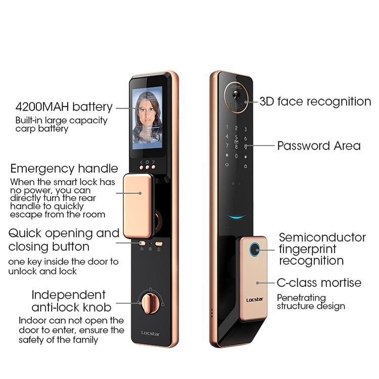 LOCSTAR S61 Fully Automatic 3D Face Recognition Tuya Wifi Smart Fingerprint Lock Anti-theft Password Lock