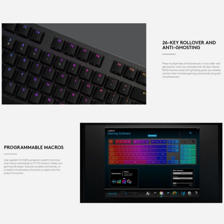 | Option | Logitech K120, Logitech K310, Logitech K400 Plus, Logitech G512 T-axis, Logitech G512 L-axis, Logitech G512 C-axis, Logitech MK100, Logitech MK345, Logitech G Pro |