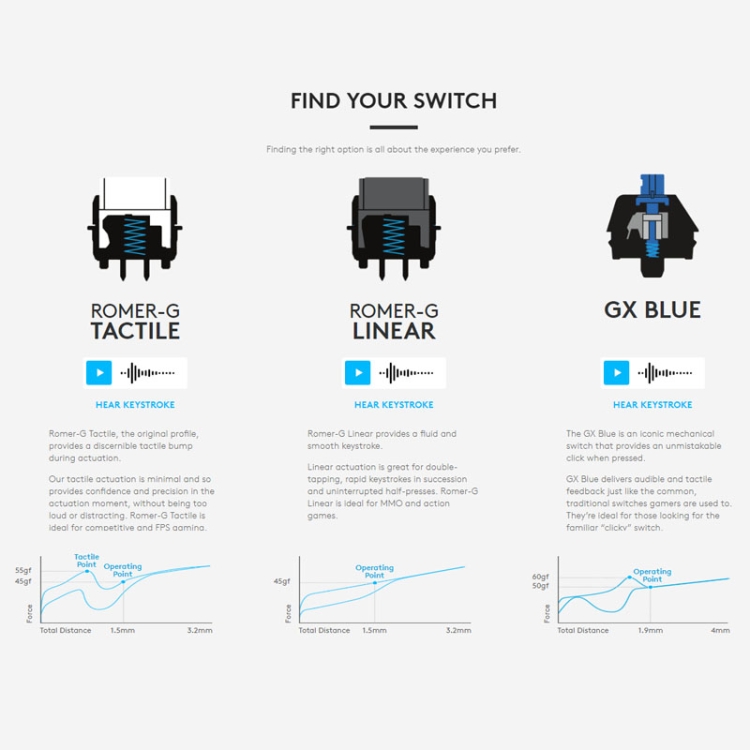 | Option | Logitech K120, Logitech K310, Logitech K400 Plus, Logitech G512 T-axis, Logitech G512 L-axis, Logitech G512 C-axis, Logitech MK100, Logitech MK345, Logitech G Pro |