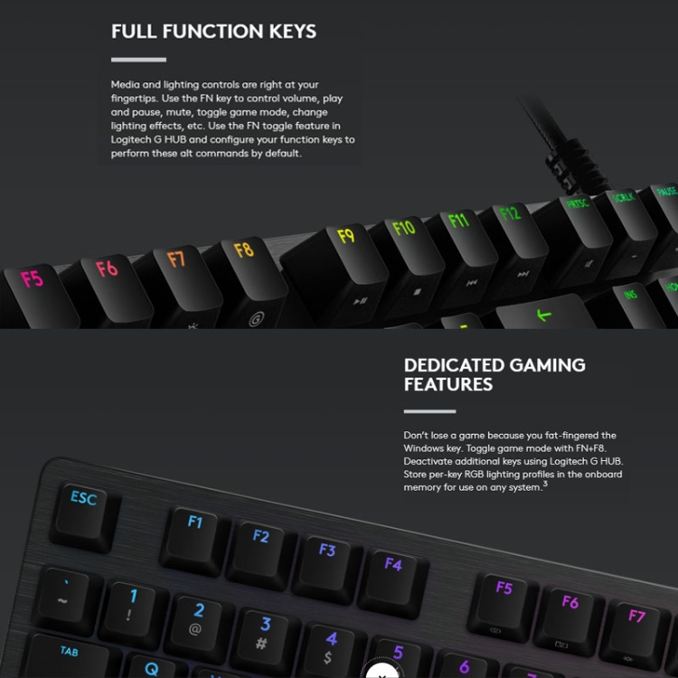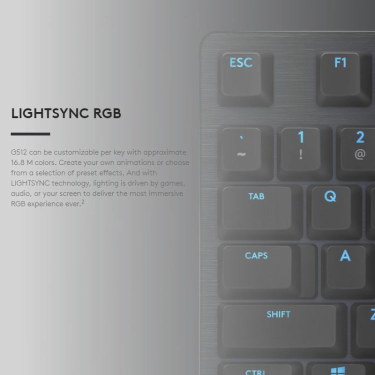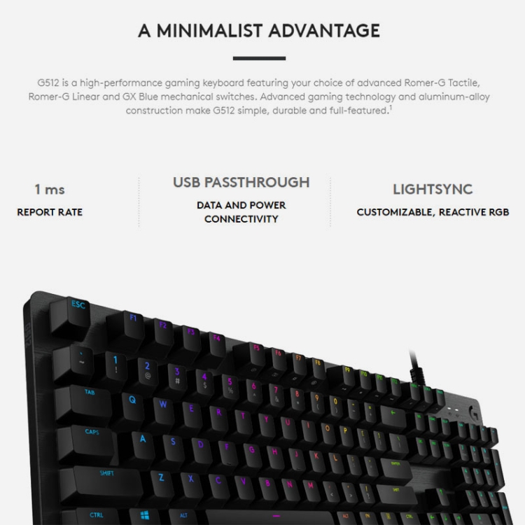 Logitech G512 RGB L-axis Mechanical Wired Gaming Keyboard, Length: 1.8m