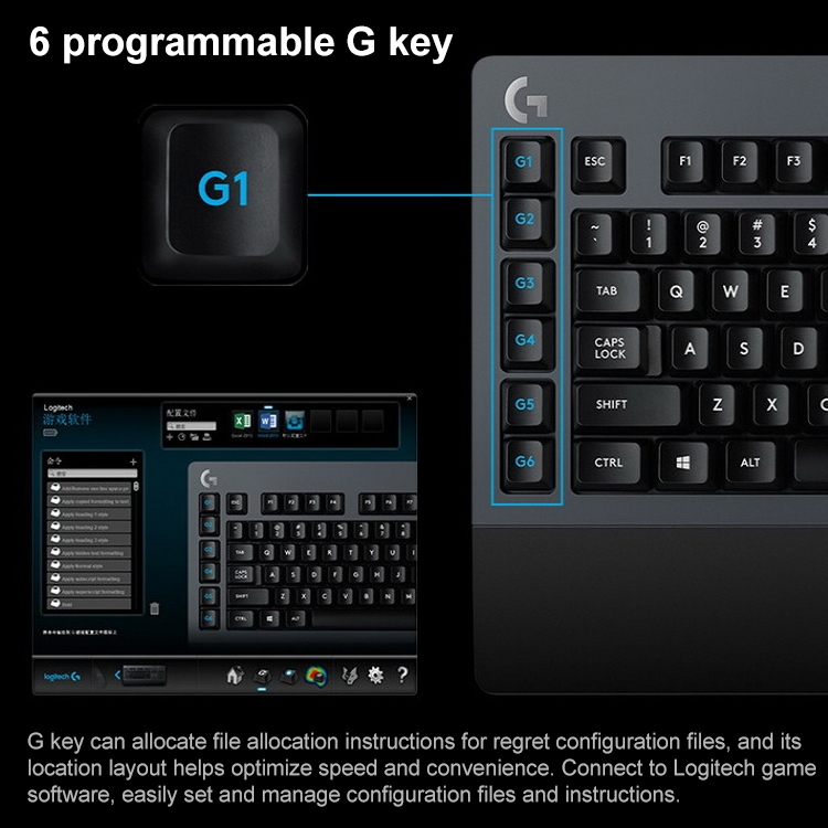 3. 6 programmable G-keys put custom macro sequences and commands at your fingertips.