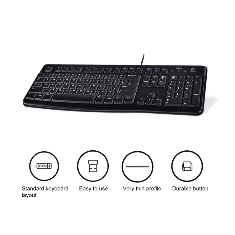Logitech K120 USB Waterproof Splash Wired Keyboard for Desktop Computers / Laptops