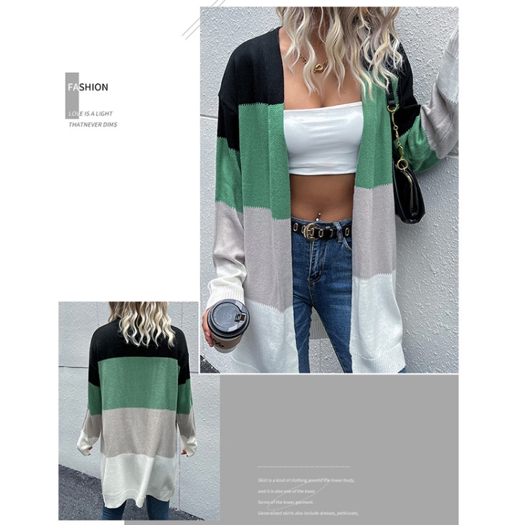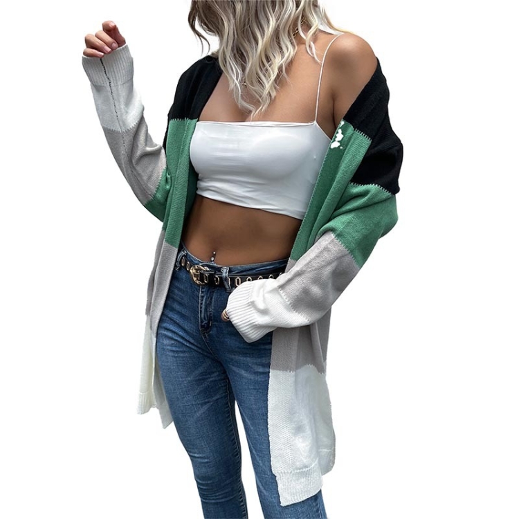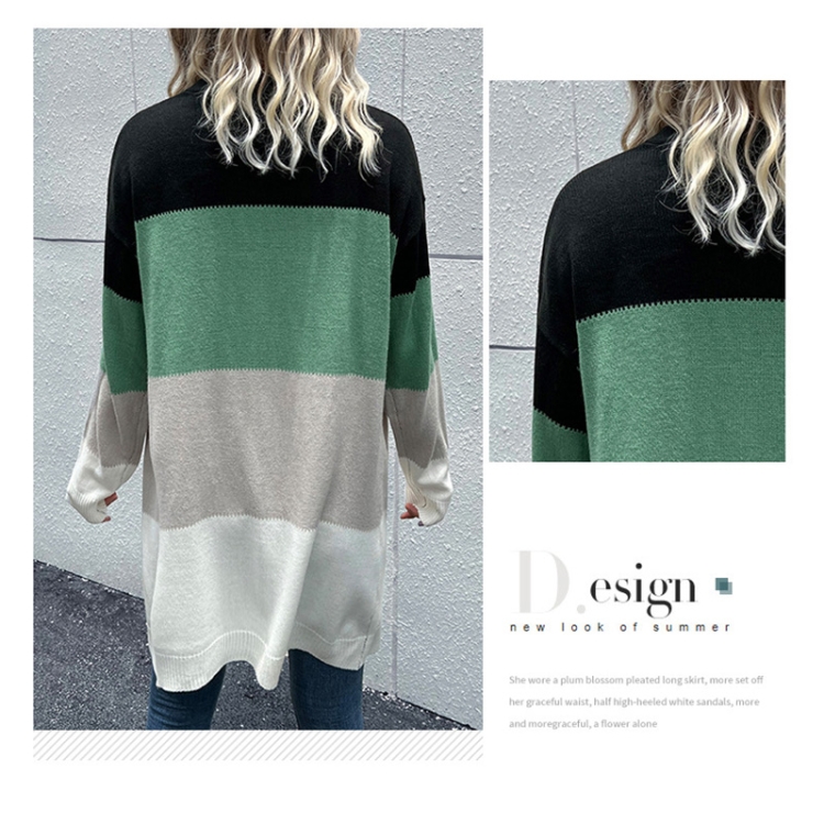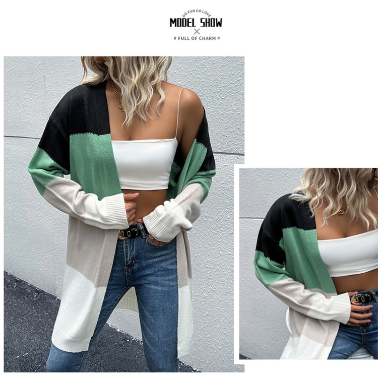 Long Cardigan Open Front Color Block Cardigan Knit Sweaters