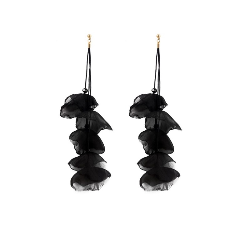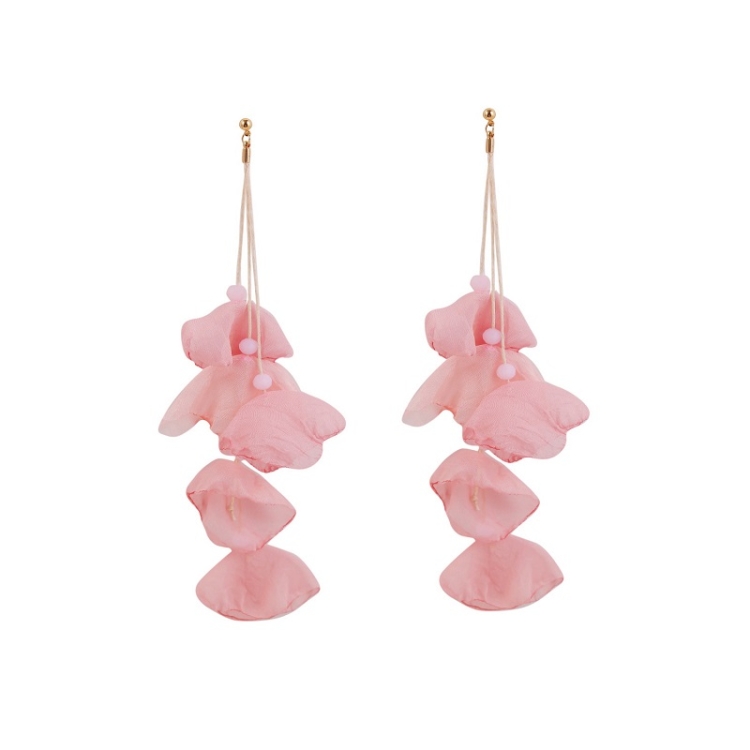 Long Exaggerated Fabric Art Handmade Petal Earrings