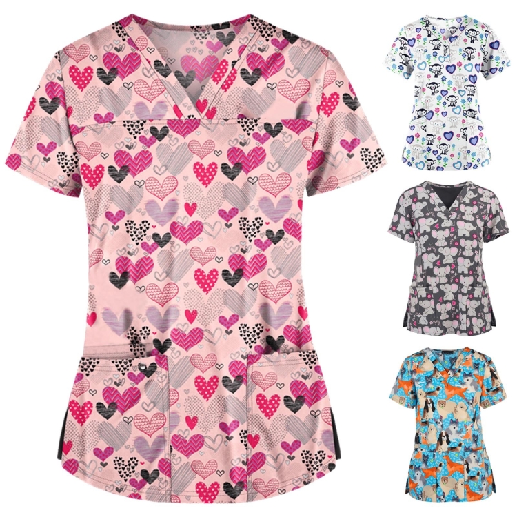 Loose Printed Hedging Thin T-shirt Nurse Uniform (Color:White Size:XXXL)