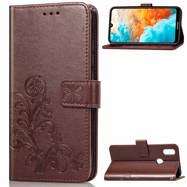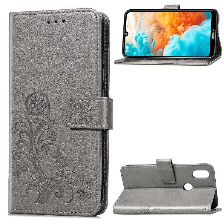 Lucky Clover Pressed Flowers Pattern Leather Case for Huawei Y6 2019, with Holder & Card Slots & Wallet & Hand Strap