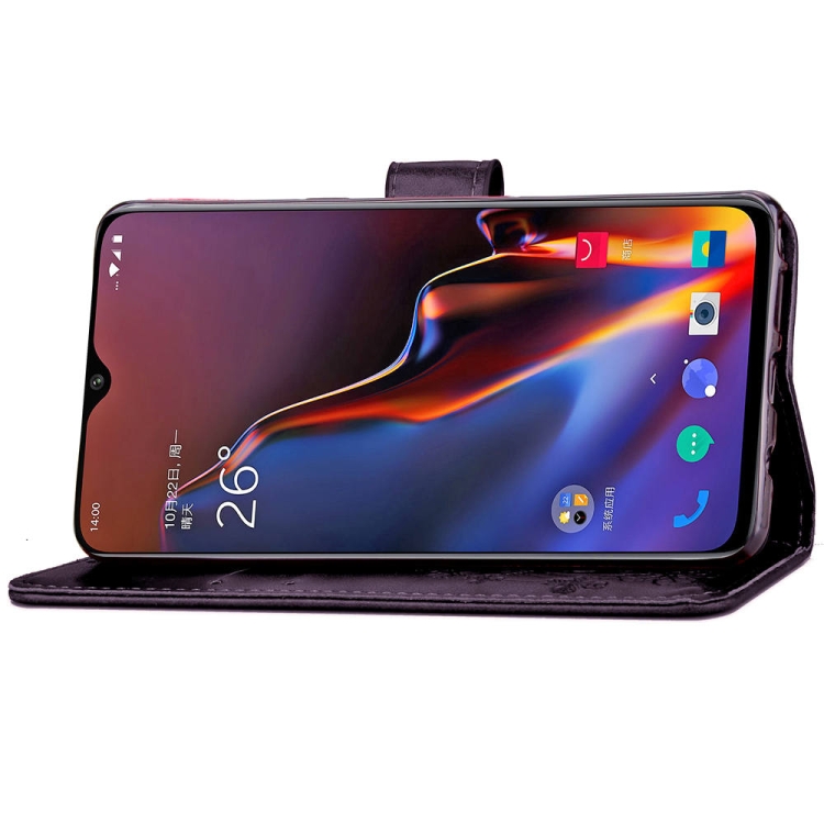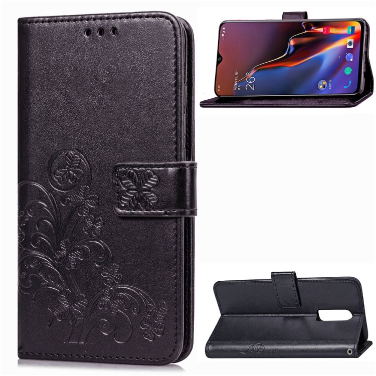 Lucky Clover Pressed Flowers Pattern Leather Case for OnePlus 6T, with Holder & Card Slots & Wallet & Hand Strap