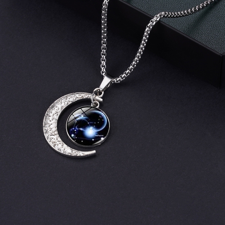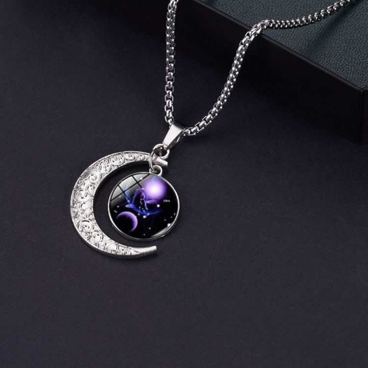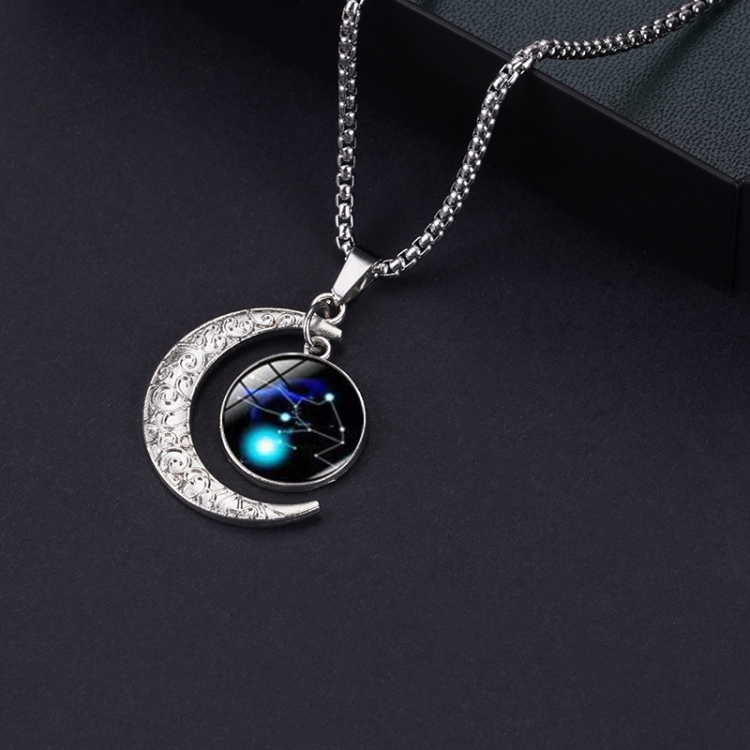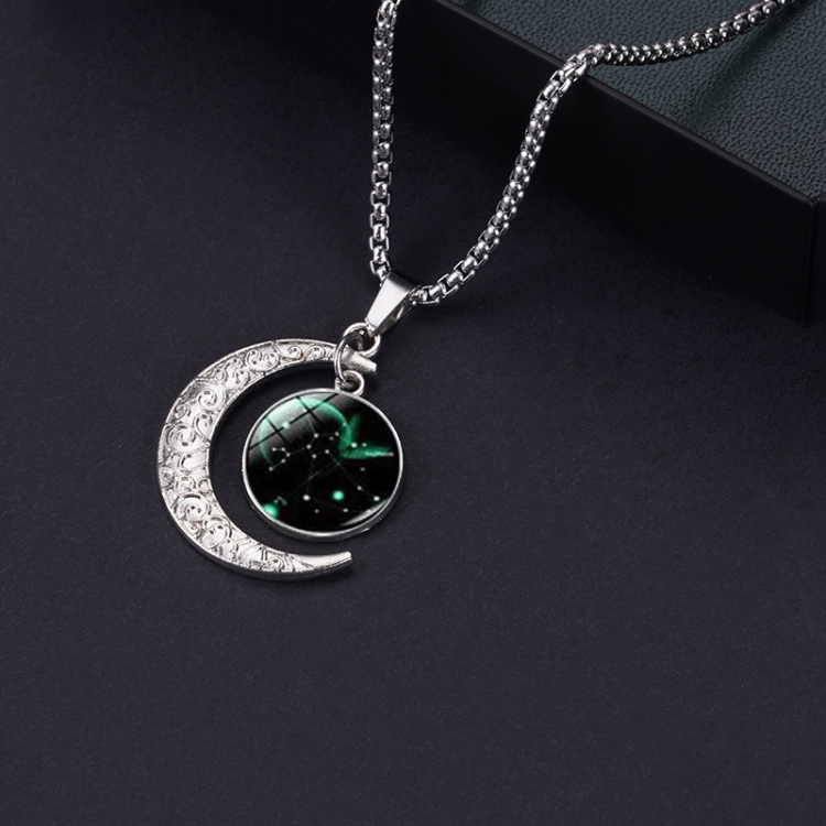 Luminous Zodiac Moon Titanium Steel Necklace Personalized Moon Pendant