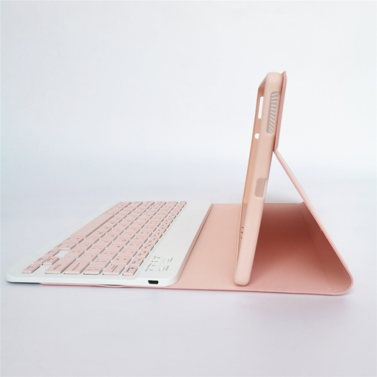LX103 Solid Color Detachable Square Keycap Bluetooth Keyboard Leather Case with Stand