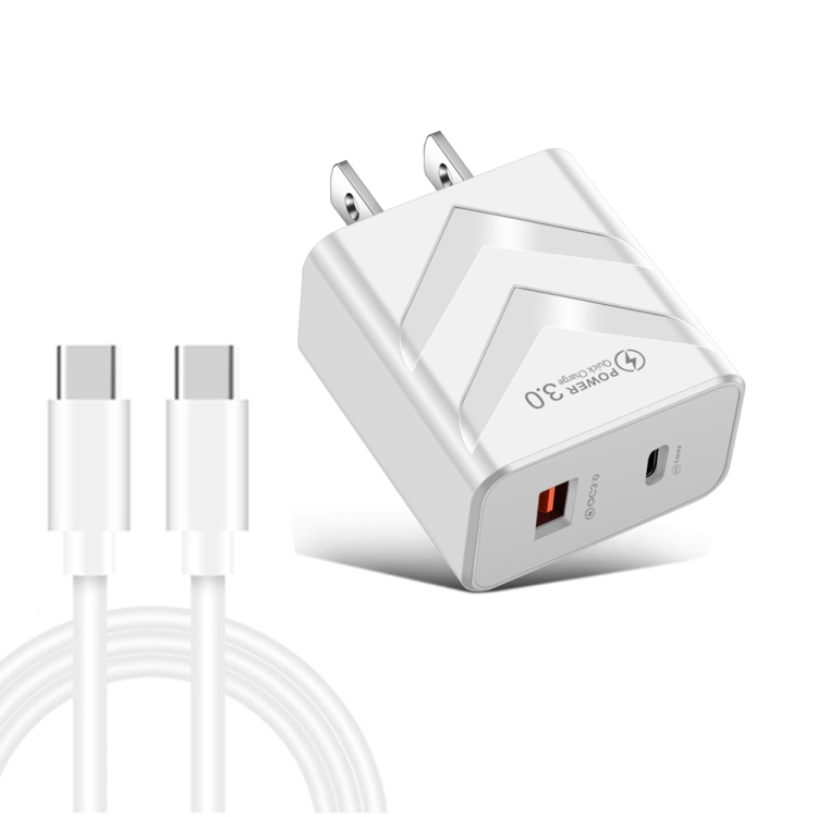 LZ-715 20W PD + QC 3.0 Dual Ports Fast Charging Travel Charger with USB-C / Type-C to USB-C / Type-C Data Cable, US Plug