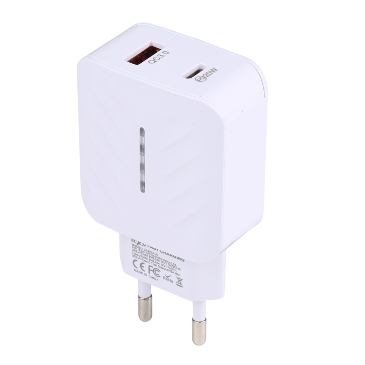 LZ-822A+C PD 20W USB-C / Type-C + QC 3.0 USB Fast Travel Charger,