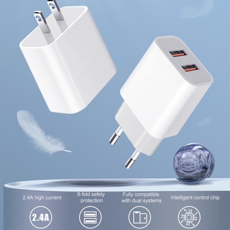 M117 2.4A Dual USB Port Flash Charger Travel Charger, EU Plug