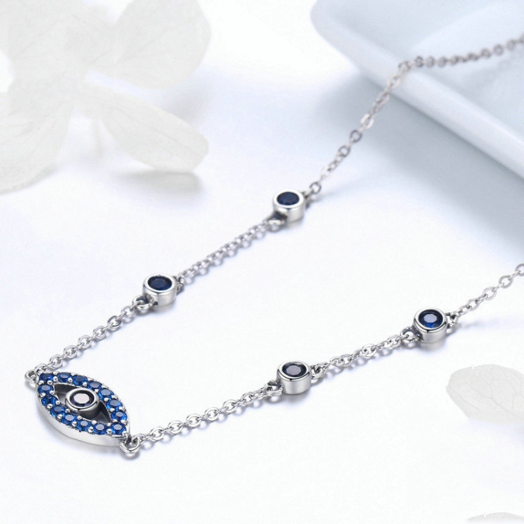 Magic Eye S925 Sterling Silver Necklace Ladies Blue Eye Inlaid Zircon Necklace