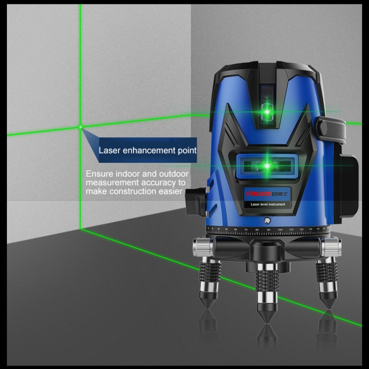 MBOOS Green Light 5 Line Outdoor Laser Level Instrument with Anti-drop Plastic Box & 1m Tripod