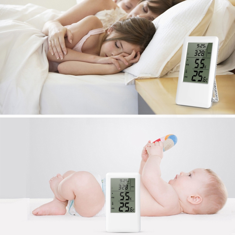 4. Function description: temperature display, humidity display, comfort reminder, historical maximum and minimum temperature humidity record within 24 hours, alarm clock function, time function, date display, touch top backlight, automatic light sensing, USB charging (internal lithium battery)