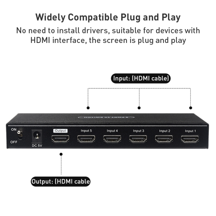 Measy SWH4651 4K 60Hz 5 In 1 Out HDMI Converter Switcher, Plug Type: EU Plug