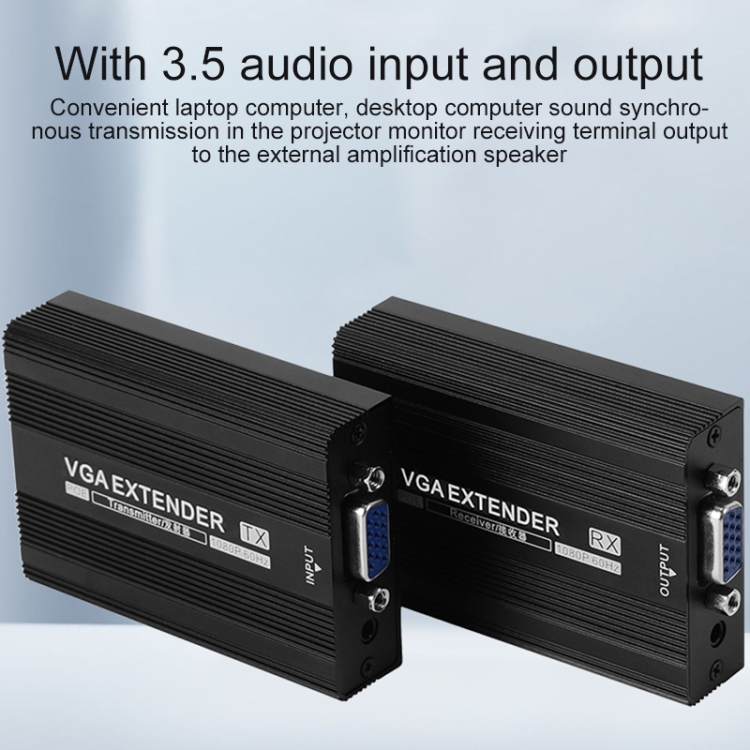 4. Extend VGA image and audio signals simultaneously up to 150m by using a cat6/6a/7 cable