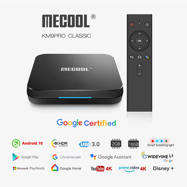 MECOOL KM9 Pro 4K Ultra HD Smart Android 9.0 Amlogic S905X2 TV Box with Remote Controller, 2GB+16GB, Support WiFi /HDMI/TF Card/USBx2,