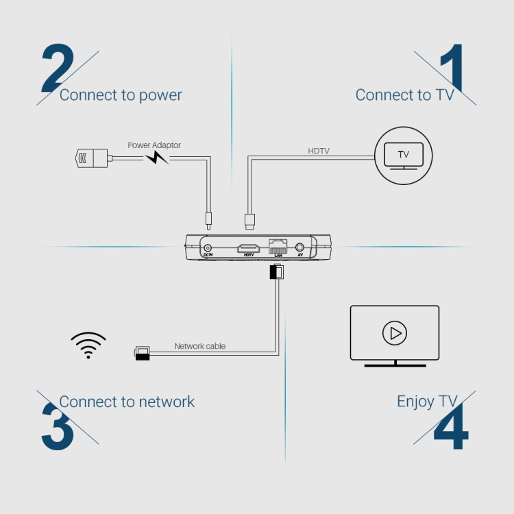 7. Packing list: 1x Adapter, 1x HDMI, 1x Gift Box, 1x IR remote control, 1x TV Box