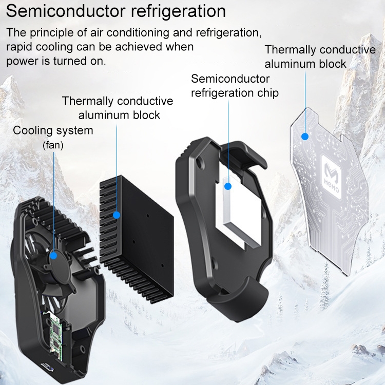 MeMo DL01 Type-C / USB-C Stretchable Mobile Phone Heat Dissipation Handle with Semiconductor Cooling Silent Fan, Suitable for Mobile Phones with a width of 67-90mm