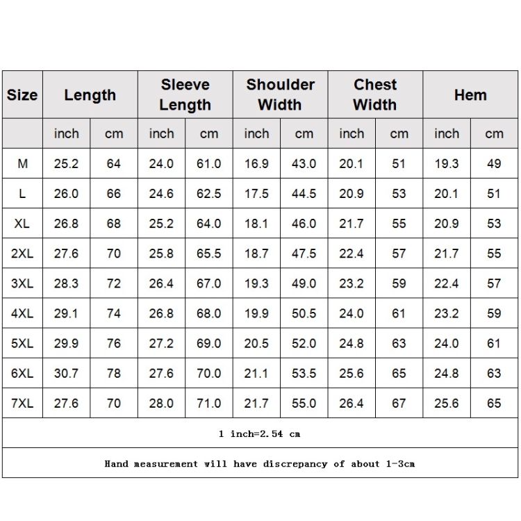6. Size: M,L,XL,XXL,XXXL,4XL,5XL,6XL,7XL