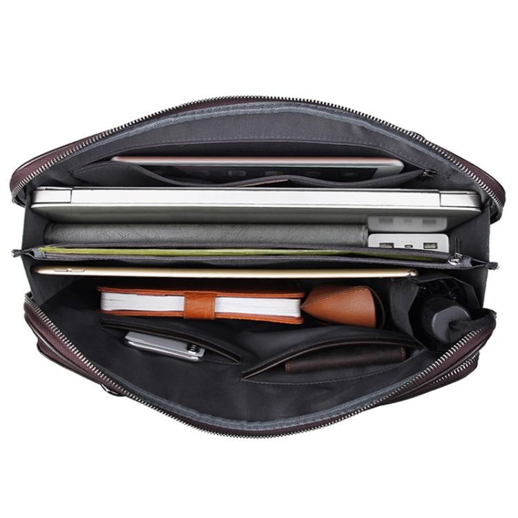 Men Business Cowhide Leather Handbag Lawyer Briefcase Messenger Bag Laptop Bag, Black, Chocolate Color
