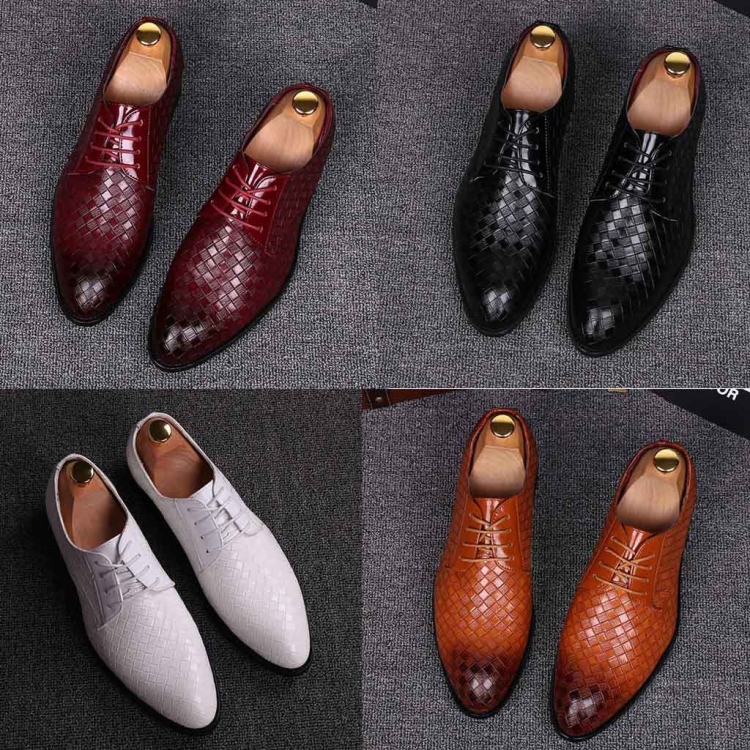Men Business Dress Shoes Crocodile Leather Shoes Pointed Strips Brock Casual Shoes