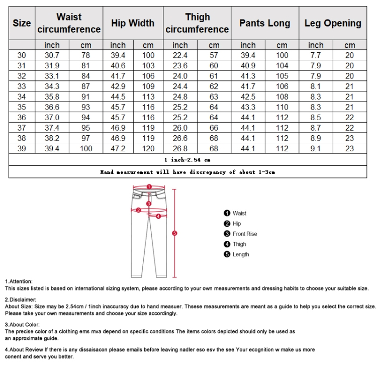 6. Size: 30, 31, 32, 33, 34, 35, 36, 37, 38, 39