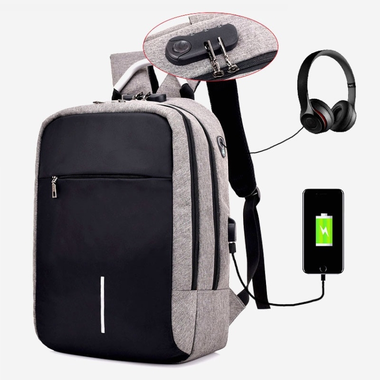 Men Password Lock Backpack Business Casual Anti-Theft Computer Bag With External USB Port