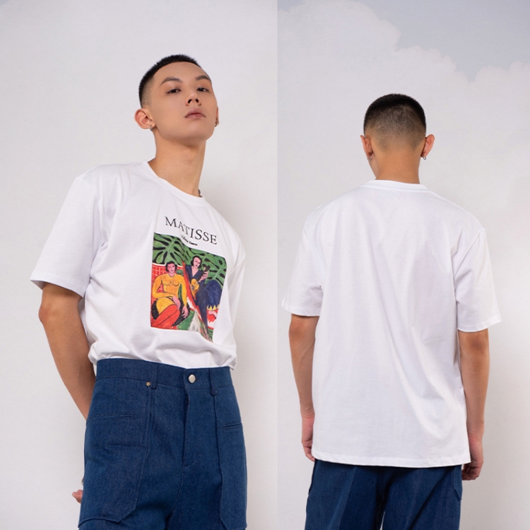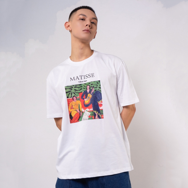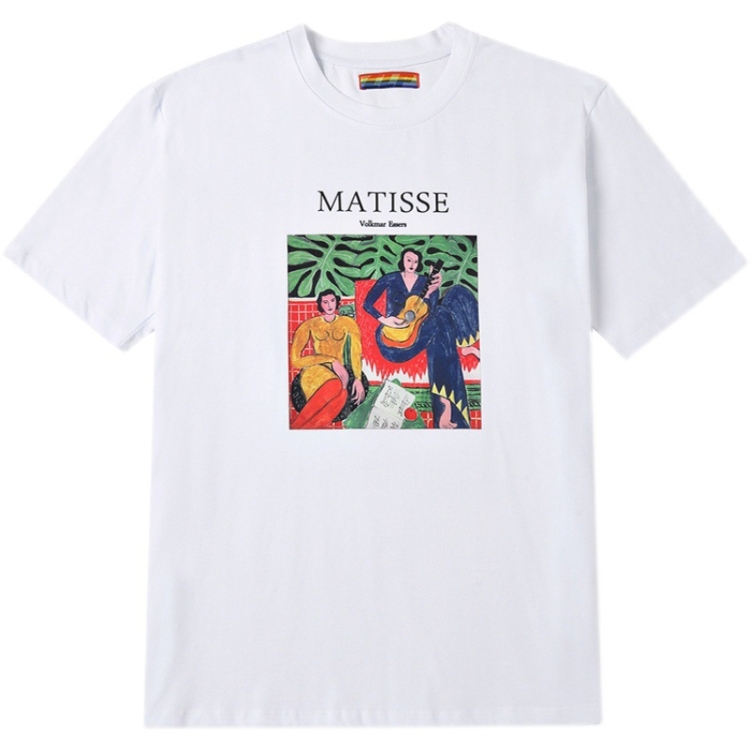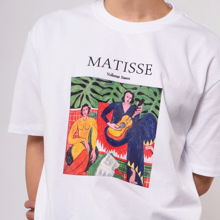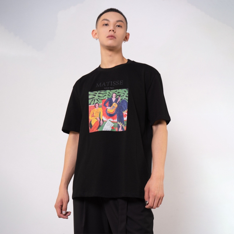 Men Pure Cotton Short Sleeve Guitar Oil Painting Loose All-Match T-Shirt