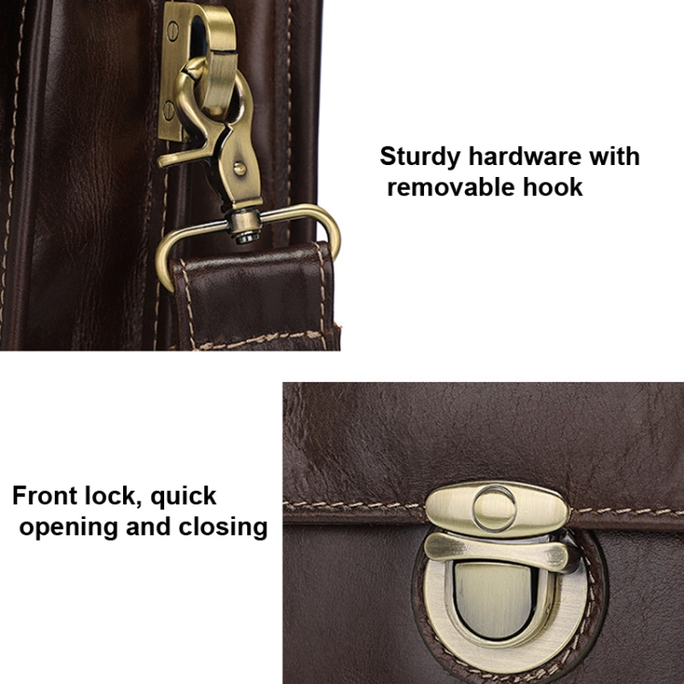 Men Retro Cowhide Leather Briefcase Multifunctional Laptop Bag for 15.6 Inch Computer