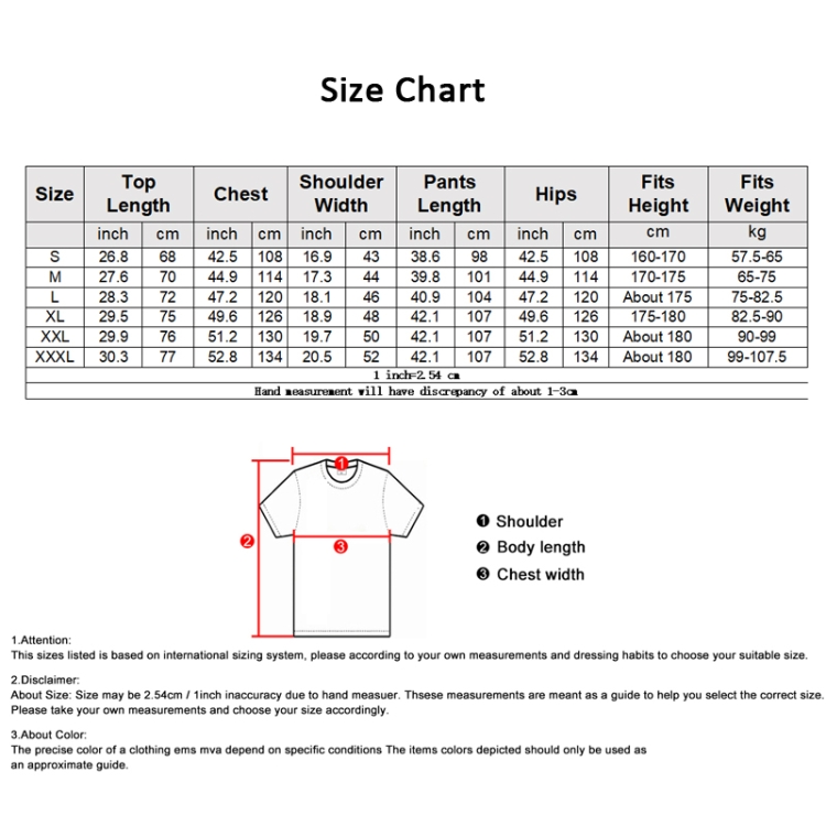 | Option | S, M, L, XL, XXL, XXXL |