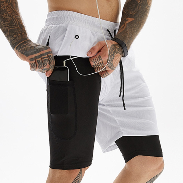 Mens Summer Quick Dry Casual Fitness 5 / 10 Pants Double Layer Anti-Shine Sports Shorts