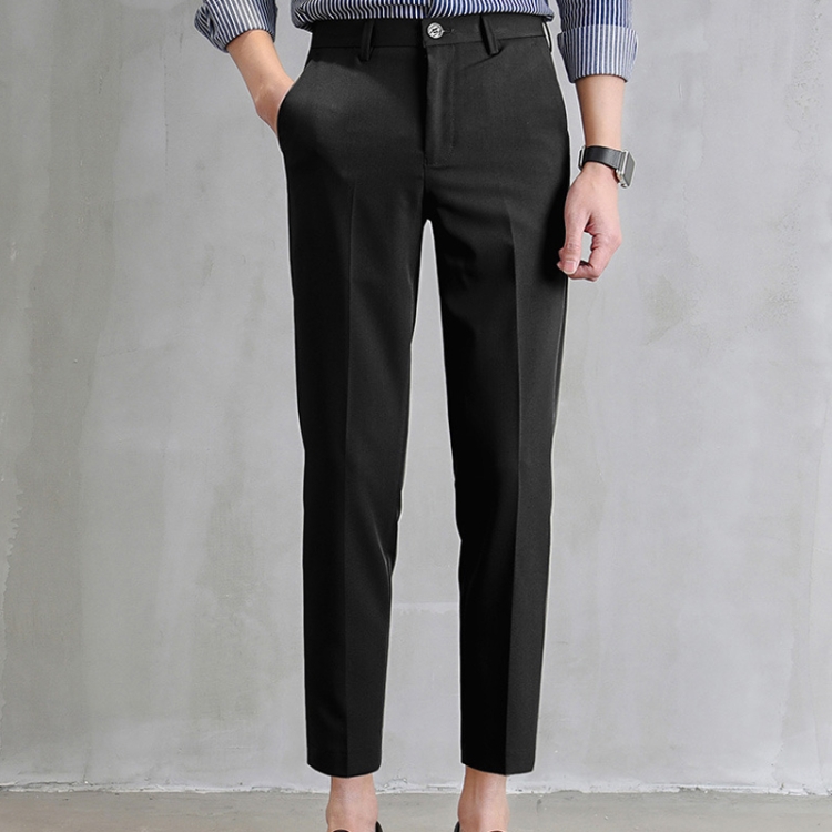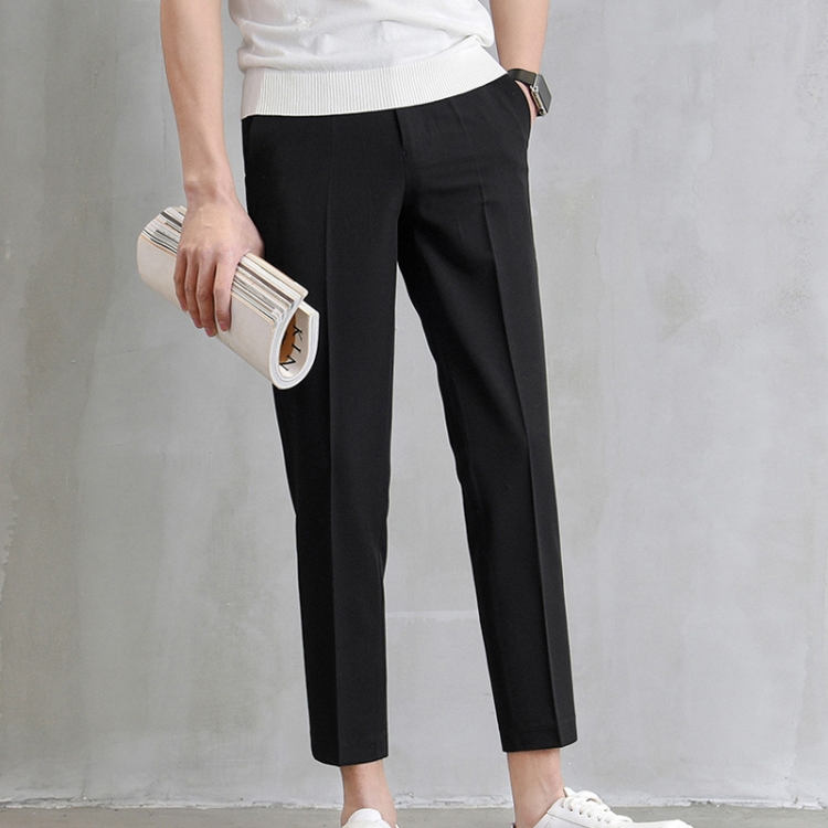 Mens Thin Black Suit Pants Casual Straight Leg Nine Minute Pants