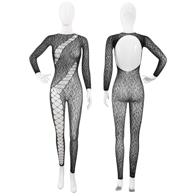 Mesh See-Through Leopard Print Stockings Erotic Lingerie Sexy Backless Crotchless Bodysuit
