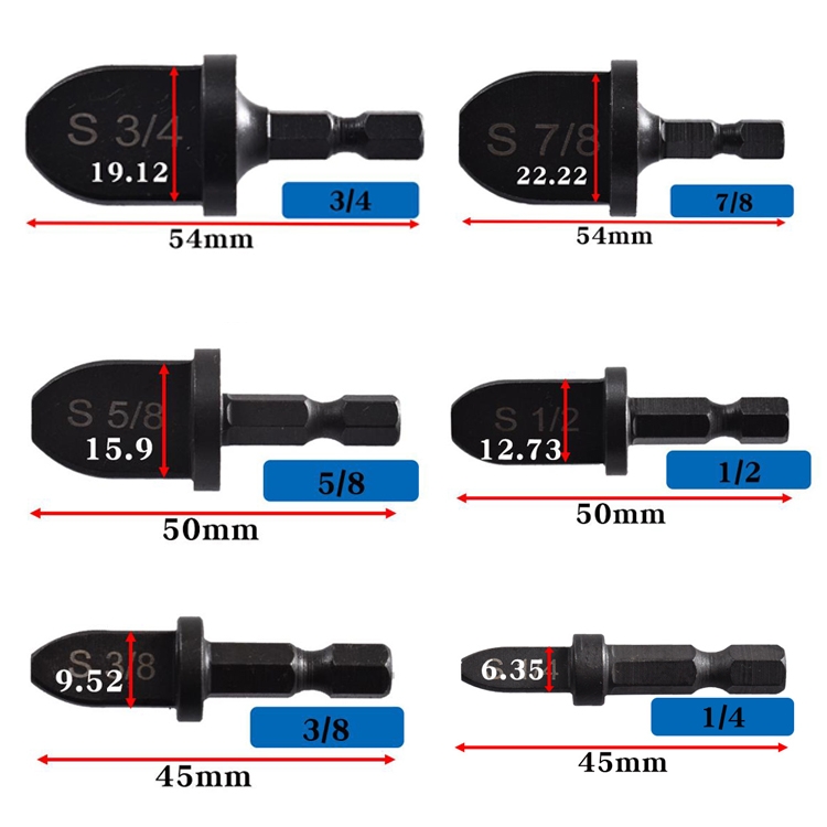 4. Specifications: 3/4 inch, 7/8 inch, 5/8 inch, 1/2 inch, 3/8 inch, 1/4 inch