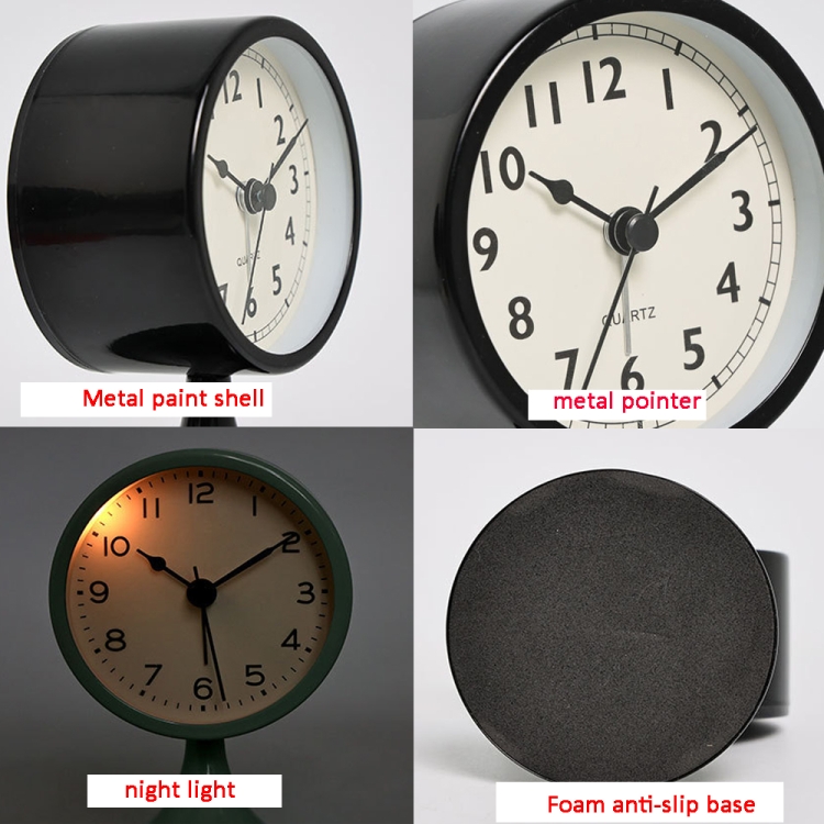 Metal Retro Silent Table Alarm Clock Student Bedside Clock With Night Light