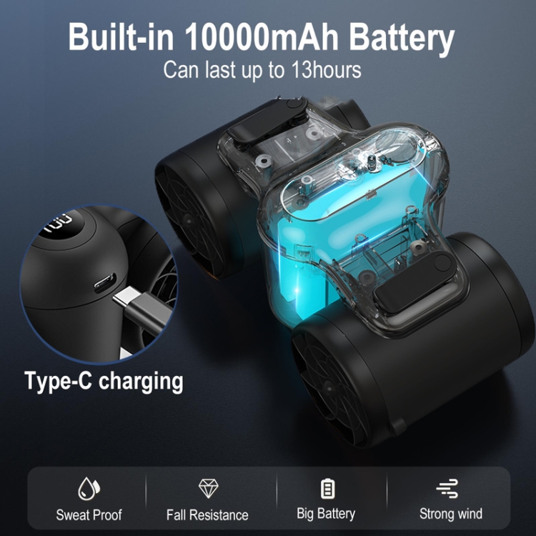 7. Large capacity battery, anti-sweat, strong wind, three-speed adjustment, double air outlet