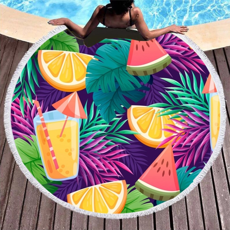 Microfiber and Fringed Soft Comfortable Circular Print Beach Towel