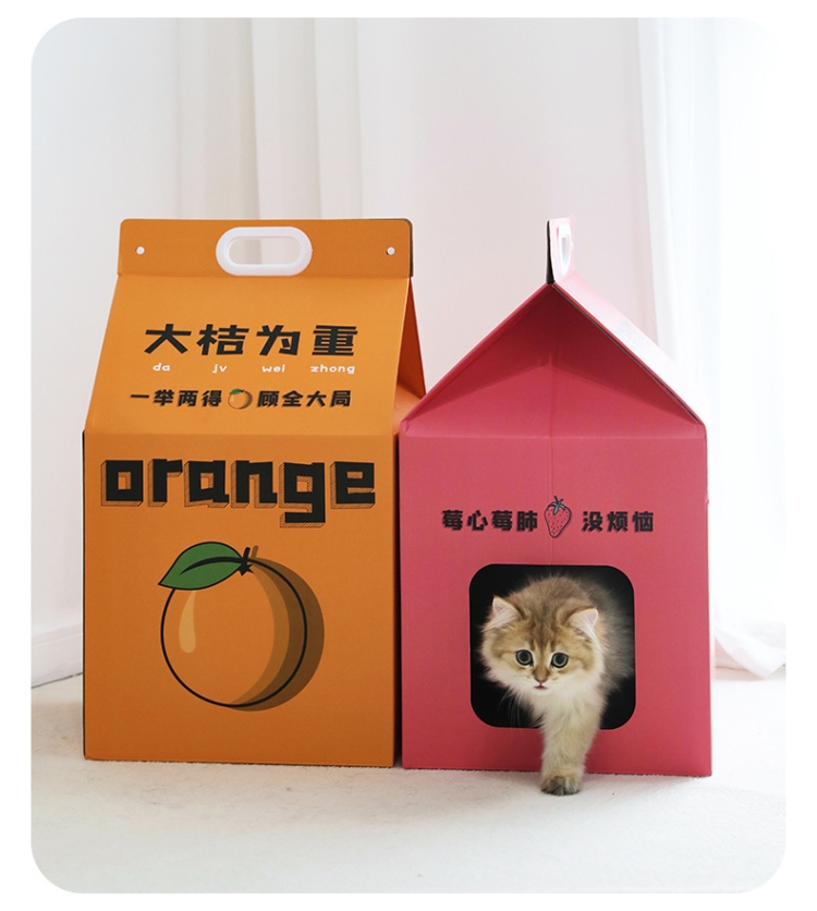 1. Fruit milk box cat scratching board, hidden space, can be used as a cat bed, can be used as a scratching board
