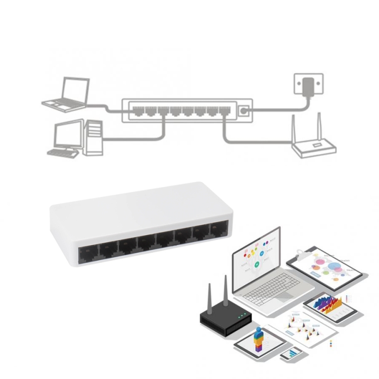 2 Lossless data transmission uses secure and stable storage and forwarding mode, and automatically learns to update MAC address. Eight 10/100Mbps are suitable for RJ45 port without dropping off line.