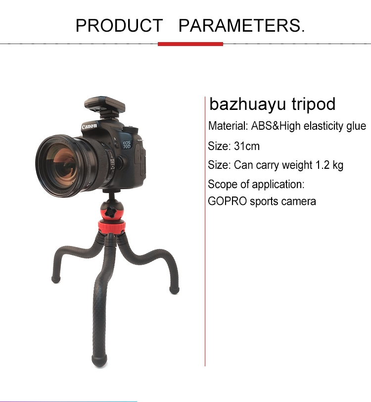 Mini Octopus Flexible Tripod Holder with Phone Clamp for iPhone, Galaxy, Huawei, GoPro Hero11 Black / HERO10 Black / HERO9 Black / HERO8 Black /7 /6 /5 /5 Session /4 Session /4 /3+ /3 /2 /1, Xiaoyi and Other Action Cameras
