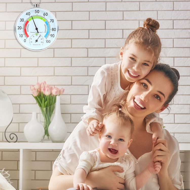 Mini Round Clock-shaped Indoor Outdoor Hygrometer Humidity Thermometer Temperature Meter with Hanging Ring