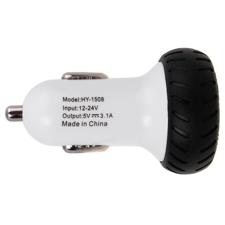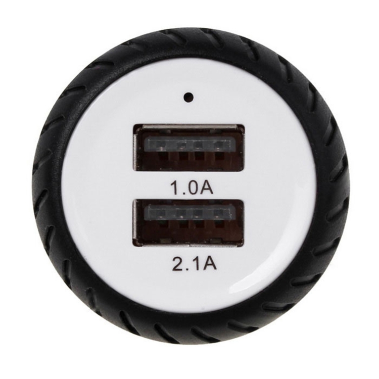 Mini Wheels Design 5V 1.0A+2.1A Double USB Universal Quick Car Charger for Phones / Tablets(White + Black )