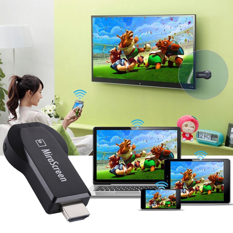 MiraScreen WiFi Display Dongle / Miracast Airplay DLNA Display Receiver Dongle Wireless Mirroring Screen Device with 2 in 1 USB Cable