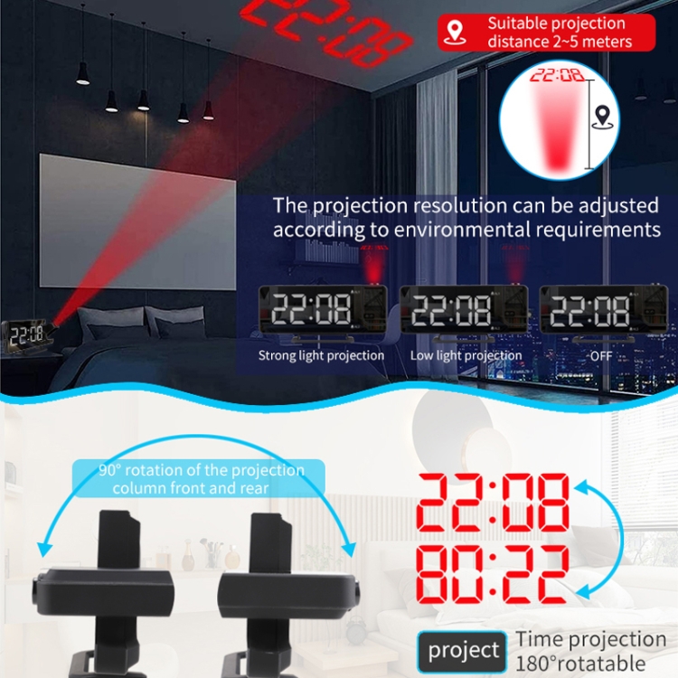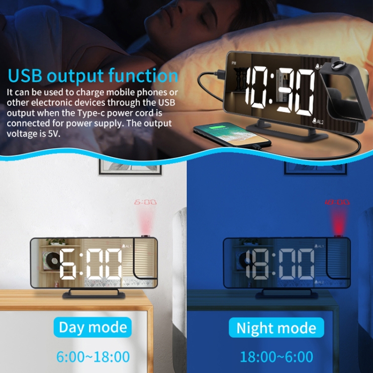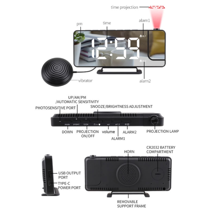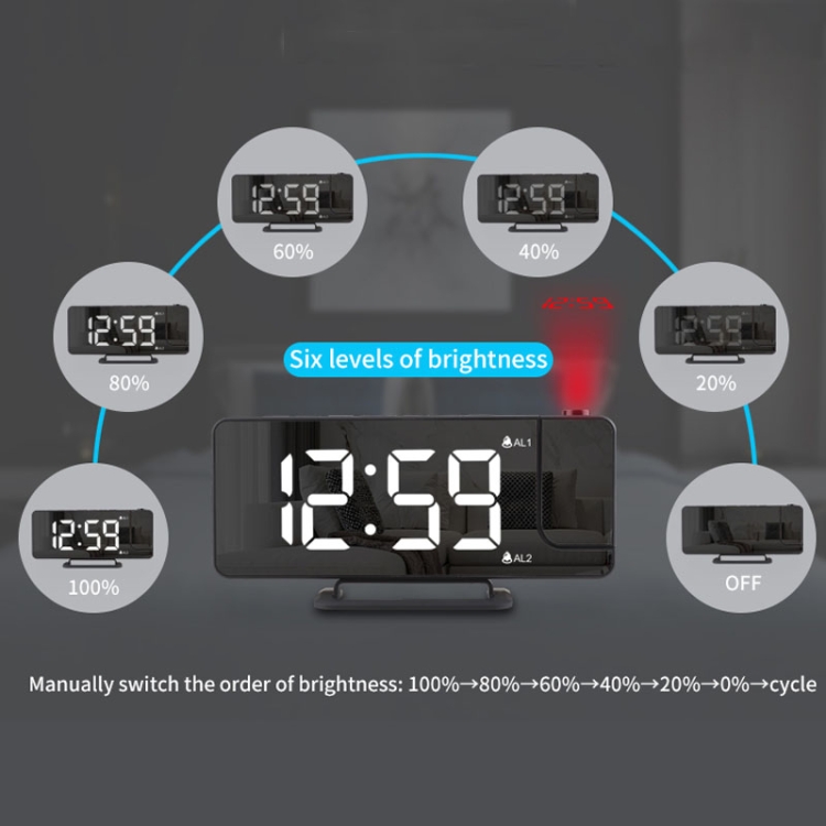 Mirror Projection Clock 2 Groups Alarm Mode with Vibrator