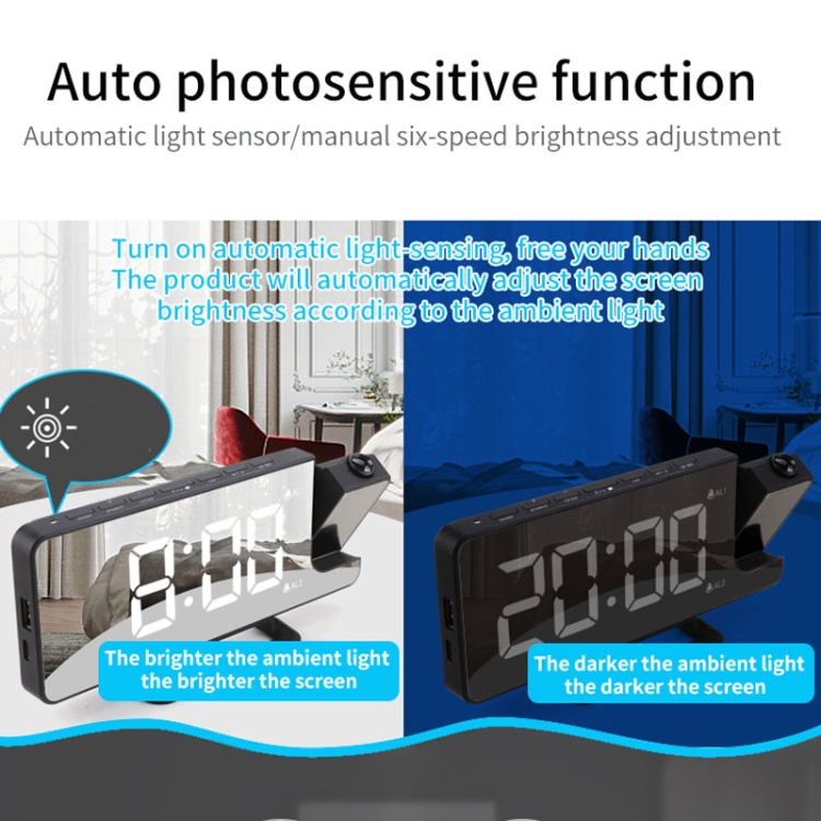 5. Automatic light-sensing/manual dimming function: In the automatic light-sensing state, the product will automatically adjust the screen brightness according to the ambient light, and there are 6 adjustable levels of brightness when switching the brightness manually