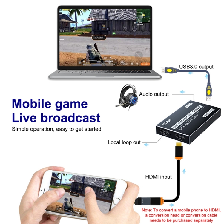MLX USB 3.0 to HDMI 4K HD Video Capture Card Device USB to HDMI Converter