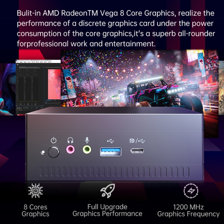 MN37 Barebone Mini PC, AMD Ryzen 7 3750H CPU, No RAM+Hard Disk, Support 3 Screens Output
